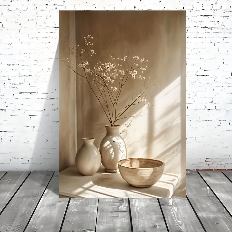 Art Deco Retro Floral Vase Canvas Wall Art Print, Frameless Modern Abstract Flower Poster for Home Decor, Aesthetic Room Decor