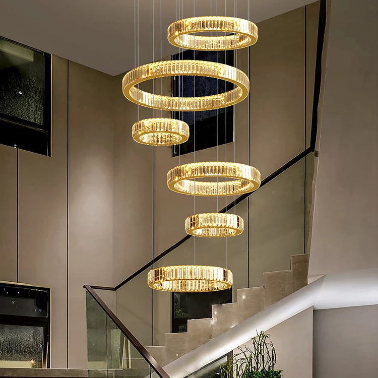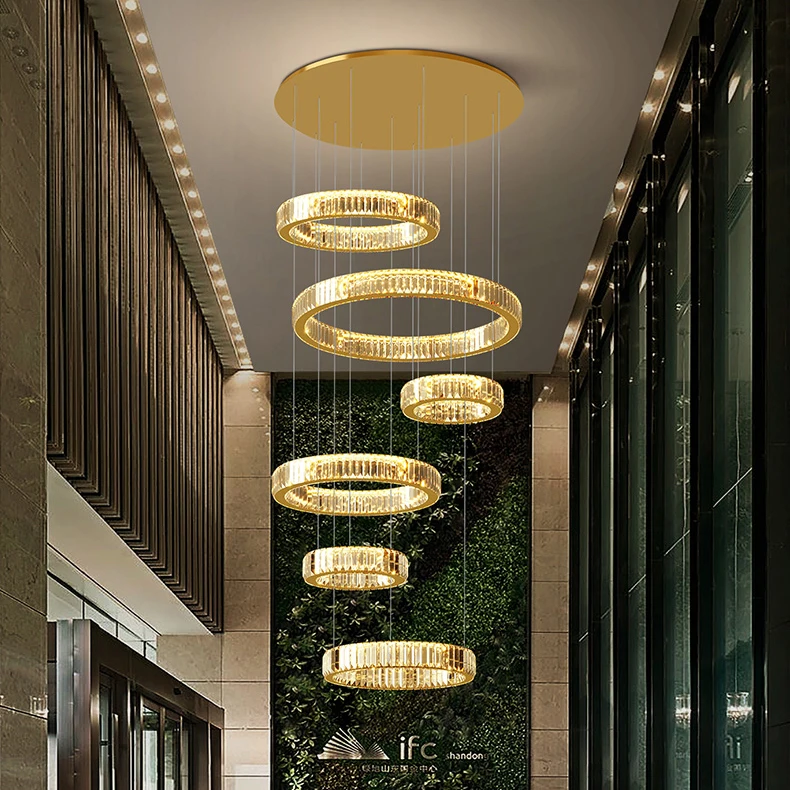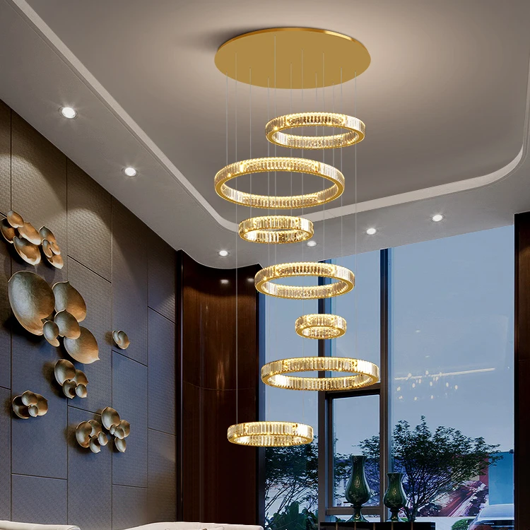 Home Decoration Pendant Light for Living Room Villa Luxury Custom Ring Crystal Chandelier